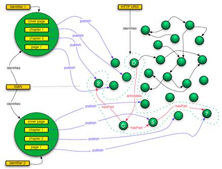 · Provide an approach to add missing logical boundary information to the web graph. This can be achieved by publishing resources that are graphs (multiple resources connected by typed links) that describe these component/compound object relationships. These published graphs overlay the web graph, and effectively become part of (are merged into[6]) it, but