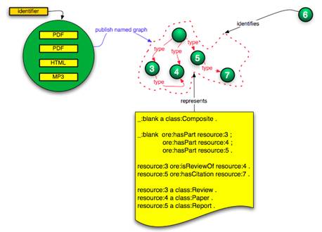 · Because the named graph is identified by means of a URI, it is a first class citizen on the web that can unambiguously be referenced by means of its URI. This feature provides the foundation for the object re-use and exchange goal of OAI-ORE: the HTTP URI of the named graph can be used as the handle to the compound object with which it corresponds.